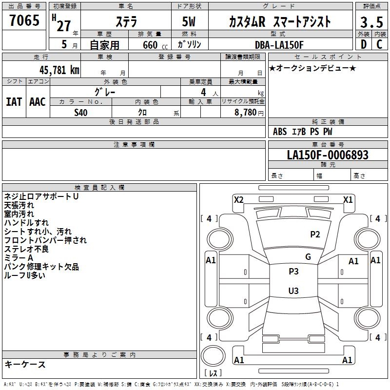 SUBARU STELLA CUSTOM R SMART ASSIST - лот 7065