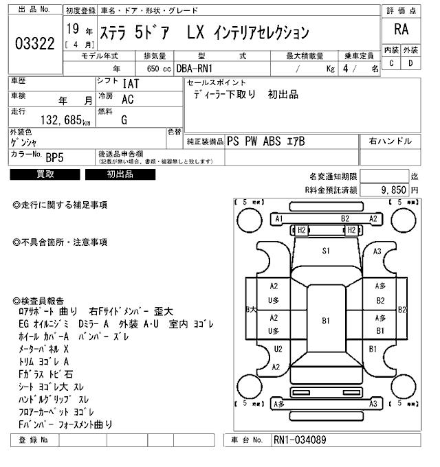 SUBARU STELLA LX INTERIOR SELECTION - лот 3322