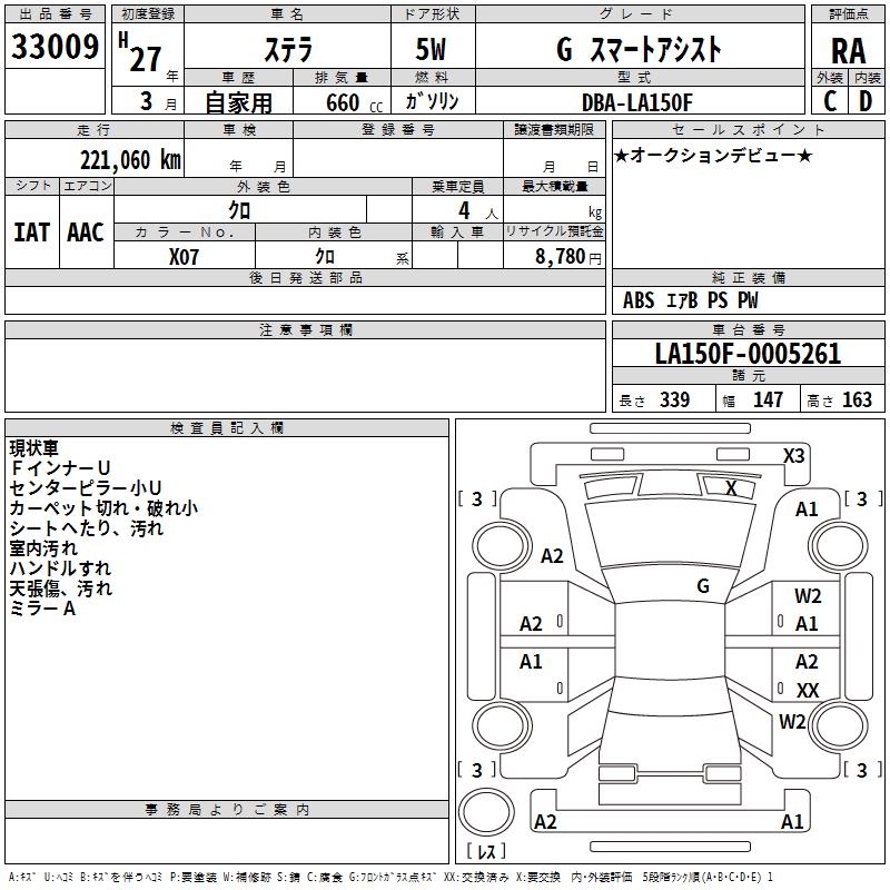 SUBARU STELLA G SMART ASSIST - лот 33009