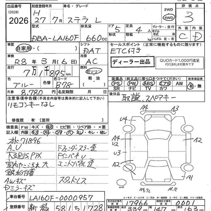 SUBARU STELLA 4WD L - лот 2026