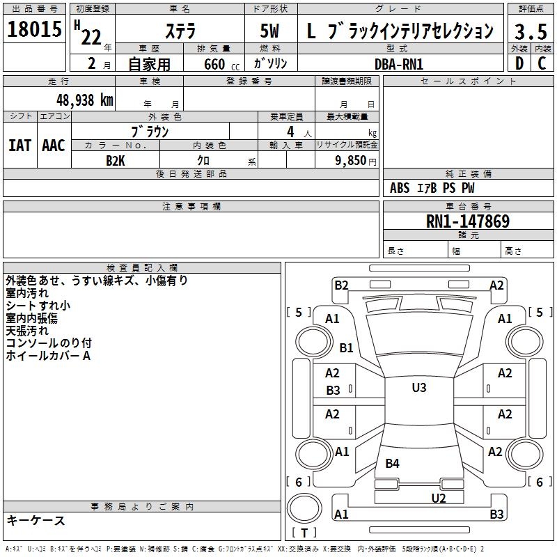 SUBARU STELLA L BLACK INTERIOR SELECTION - лот 18015
