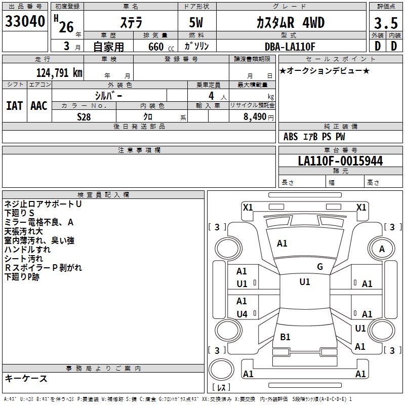 SUBARU STELLA CUSTOM R 4WD - лот 33040