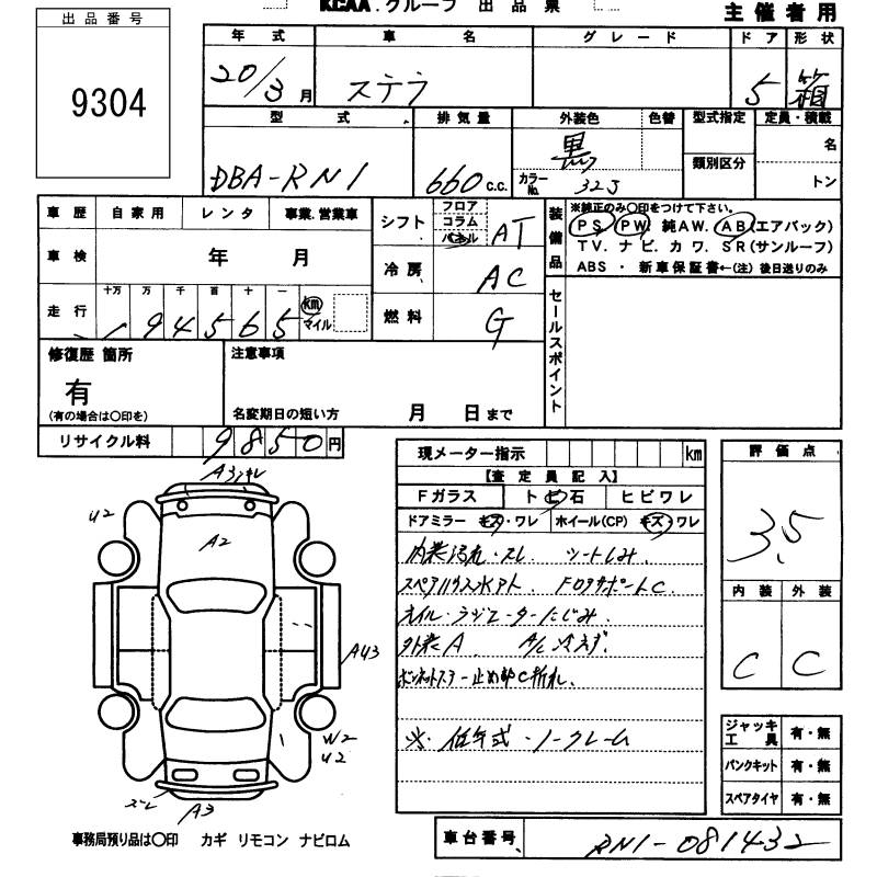 SUBARU STELLA - лот 9304