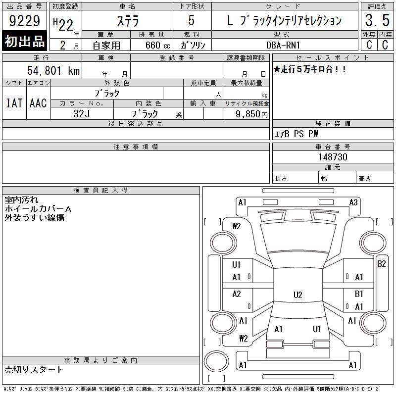 SUBARU STELLA L BLACK INTERIOR SELECTION - лот 9229