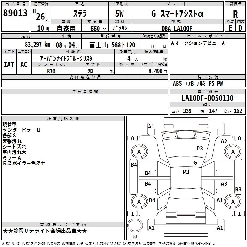 SUBARU STELLA G SMART ASSIST ALPHA - лот 89013