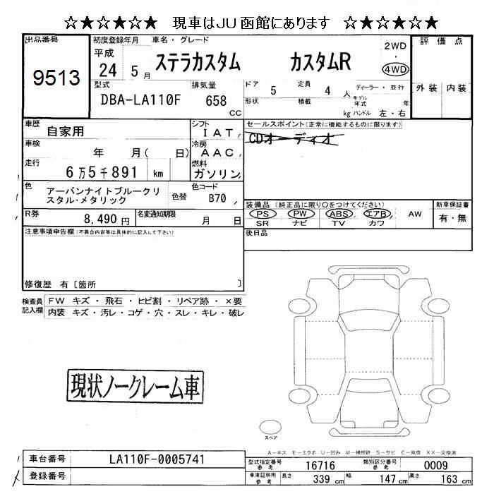 SUBARU STELLA 4WD CUSTOM R - лот 9513
