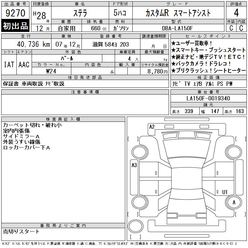 SUBARU STELLA CUSTOM R SMART ASSIST - лот 9270