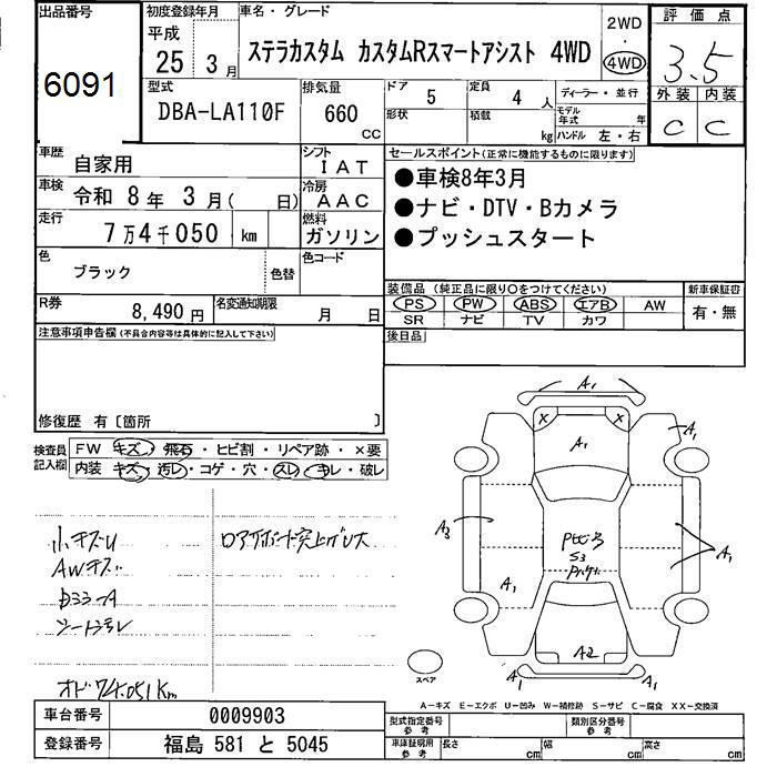 SUBARU STELLA 4WD CUSTOM R SMART ASSIST - лот 6091