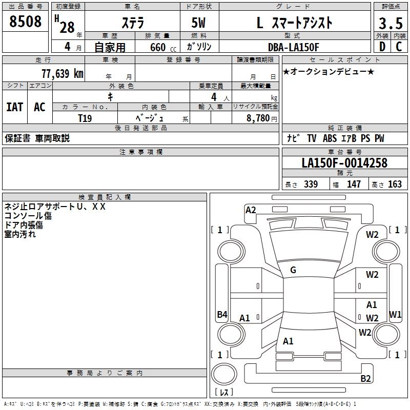 SUBARU STELLA L SMART ASSIST - лот 8508