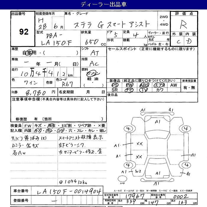 SUBARU STELLA G SMART ASSIST - лот 92