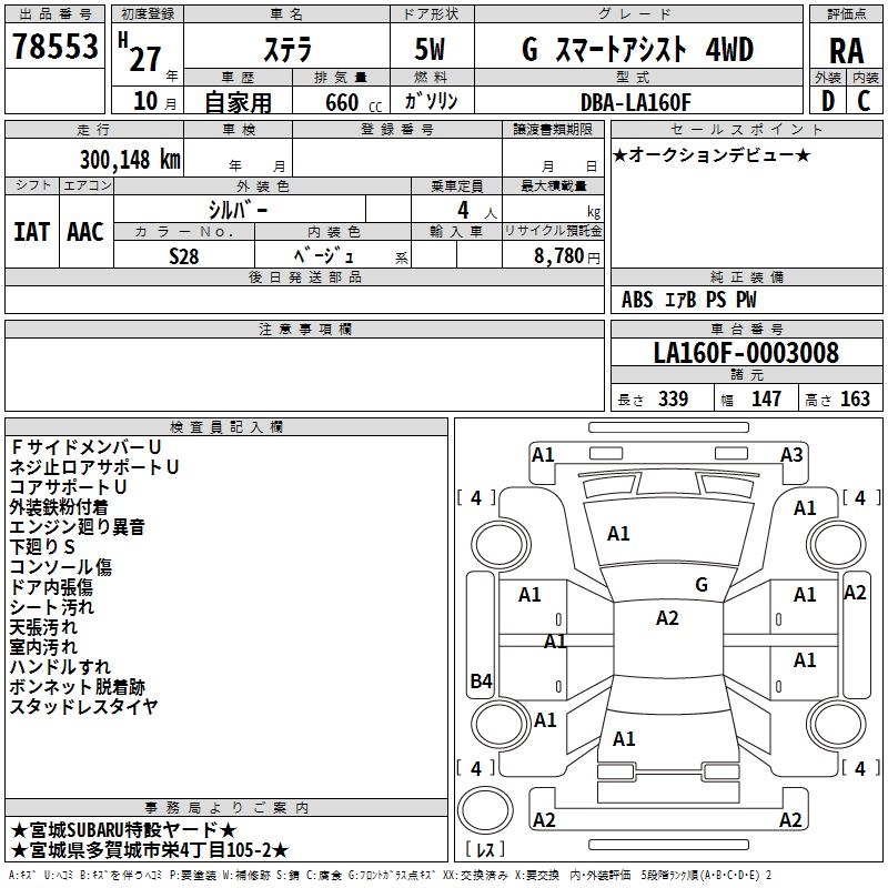 SUBARU STELLA G SMART ASSIST 4WD - лот 78553