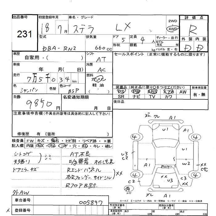 SUBARU STELLA 4WD LX - лот 231