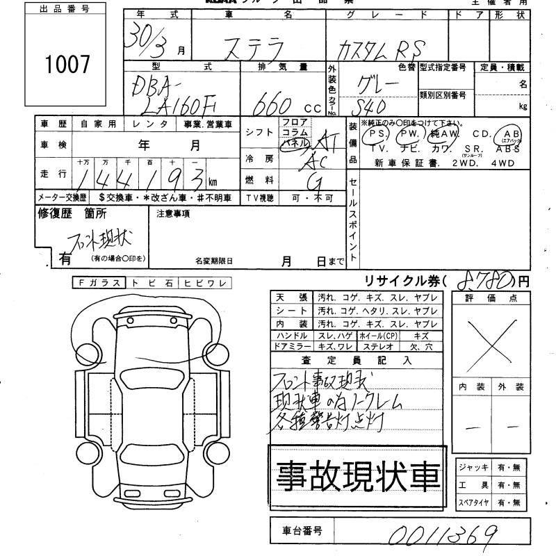 SUBARU STELLA CUSTOM RS - лот 1007