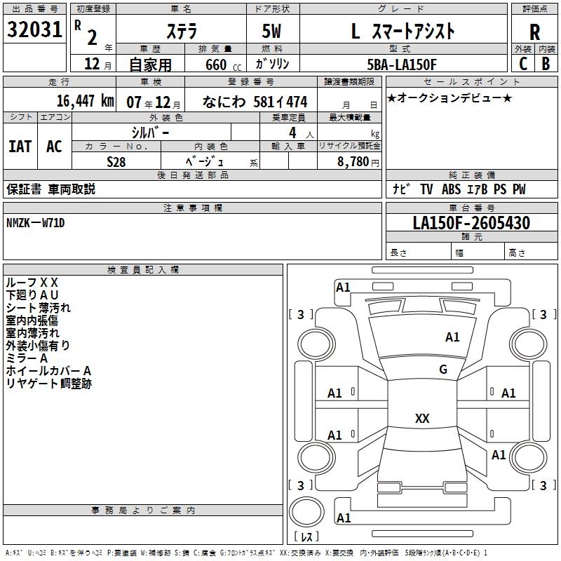 SUBARU STELLA L SMART ASSIST - лот 32031