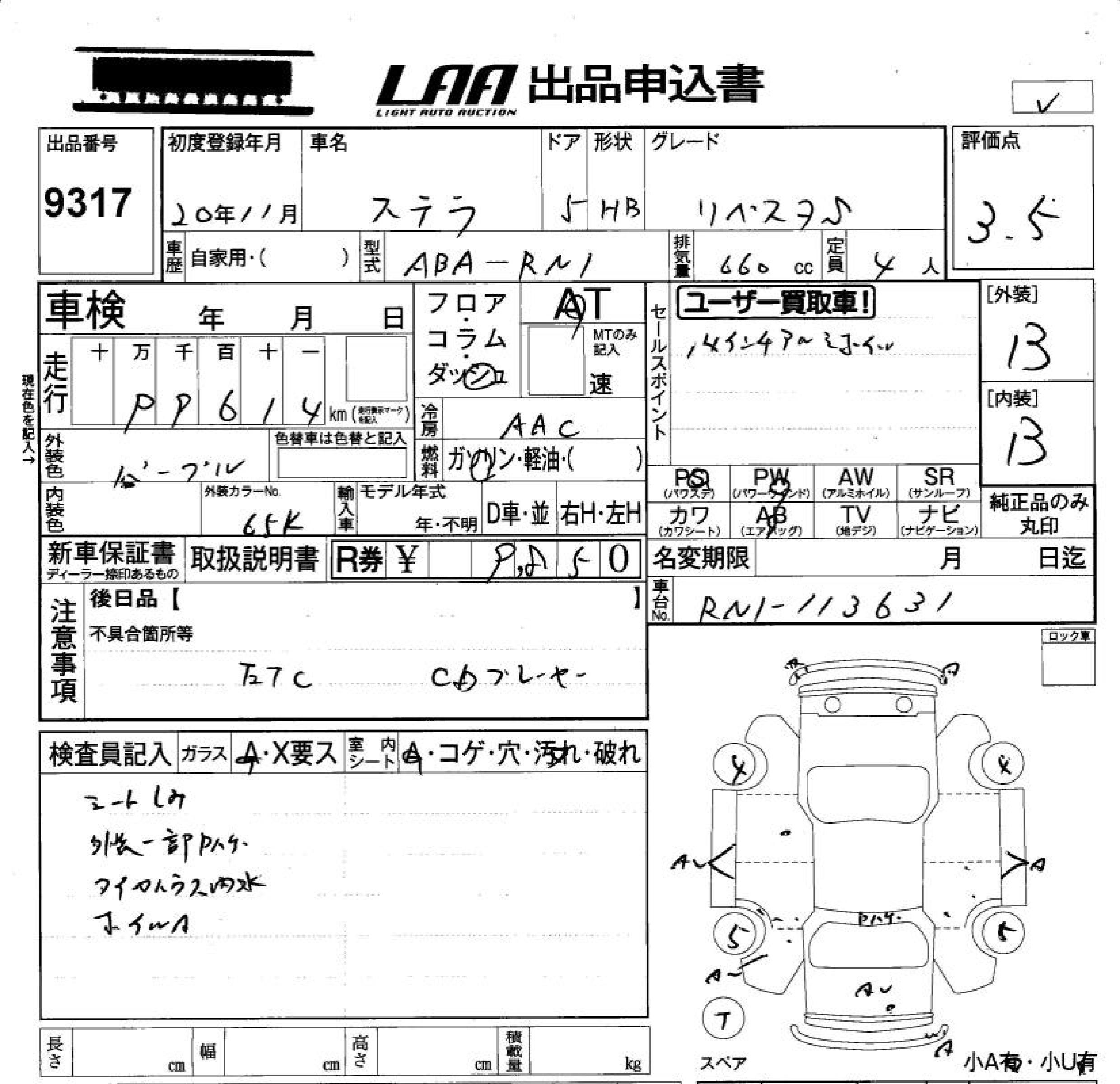 SUBARU STELLA LIBES MANY S - лот 9317