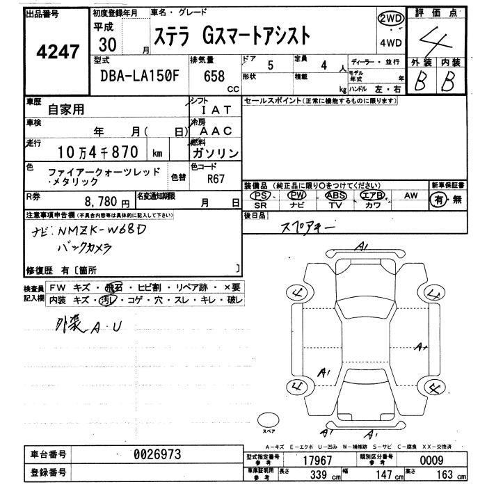 SUBARU STELLA G SMART ASSIST - лот 4247