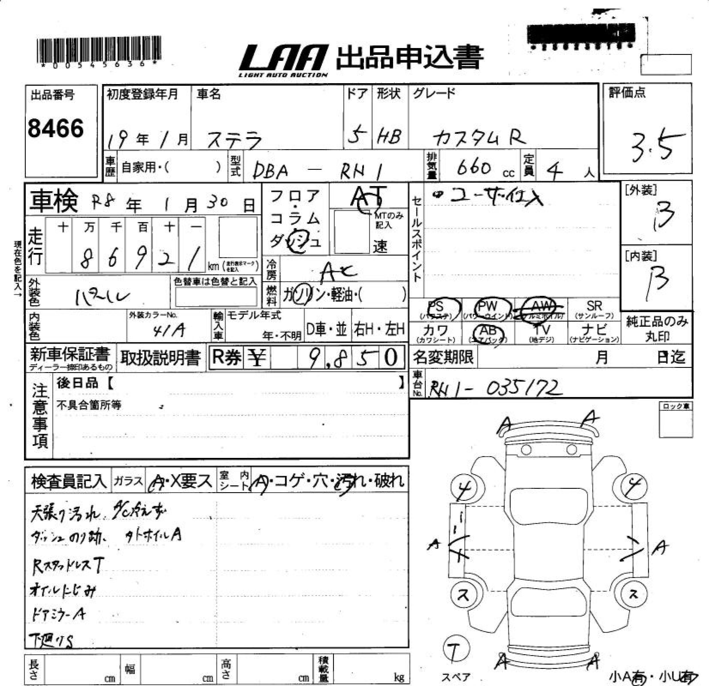 SUBARU STELLA CUSTOM R - лот 8466