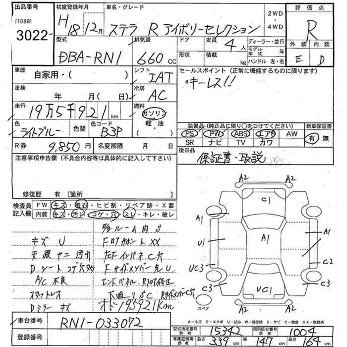 SUBARU STELLA R IVORY SELECTION - лот 3022