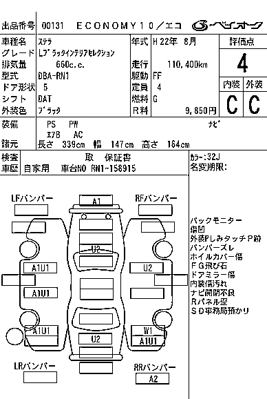 SUBARU STELLA L BLACK INTERIOR SELECTION - лот 131