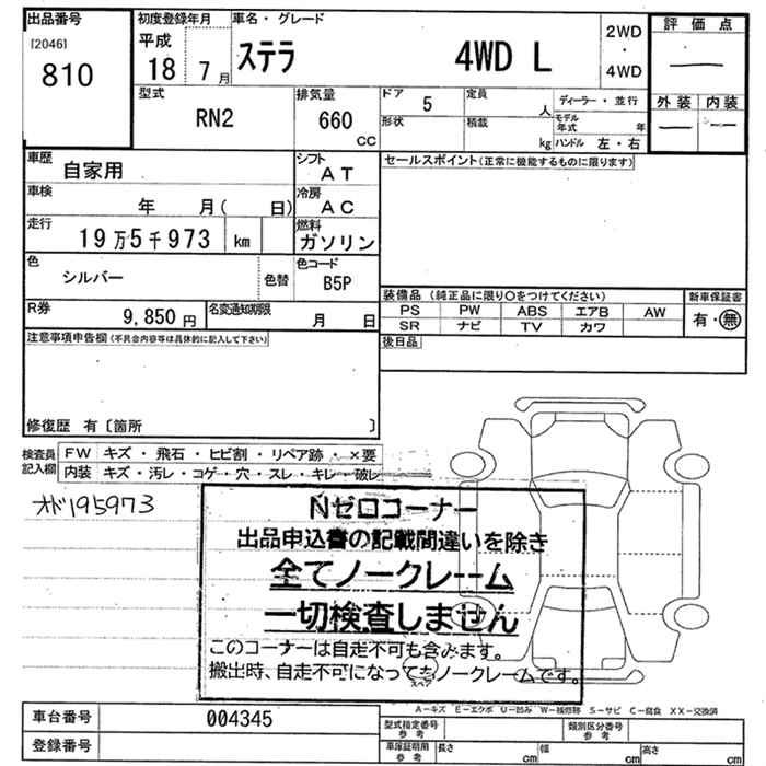 SUBARU STELLA 4WD L - лот 810