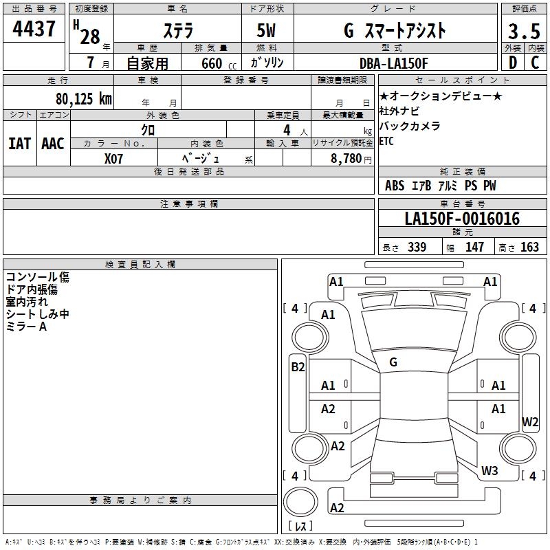 SUBARU STELLA G SMART ASSIST - лот 4437
