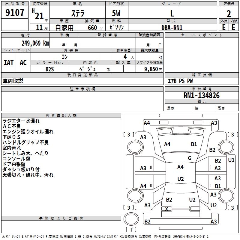 SUBARU STELLA L - лот 9107