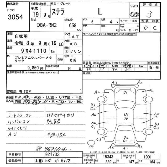 SUBARU STELLA 4WD L - лот 3054