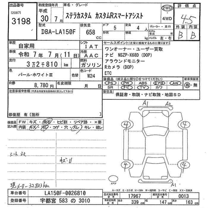 SUBARU STELLA custom R Smart assist - лот 3198