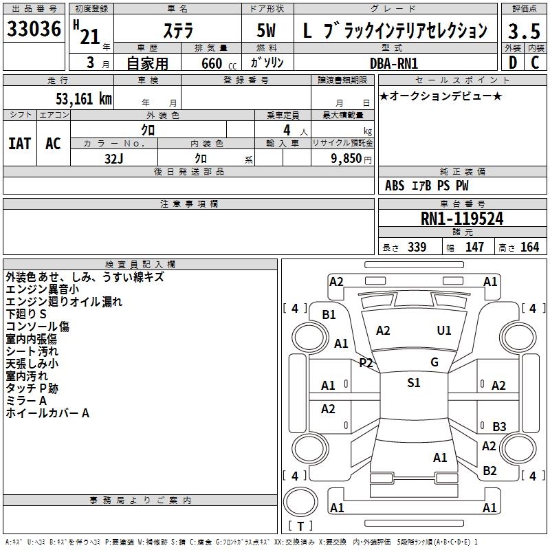 SUBARU STELLA L BLACK INTERIOR SELECTION - лот 33036