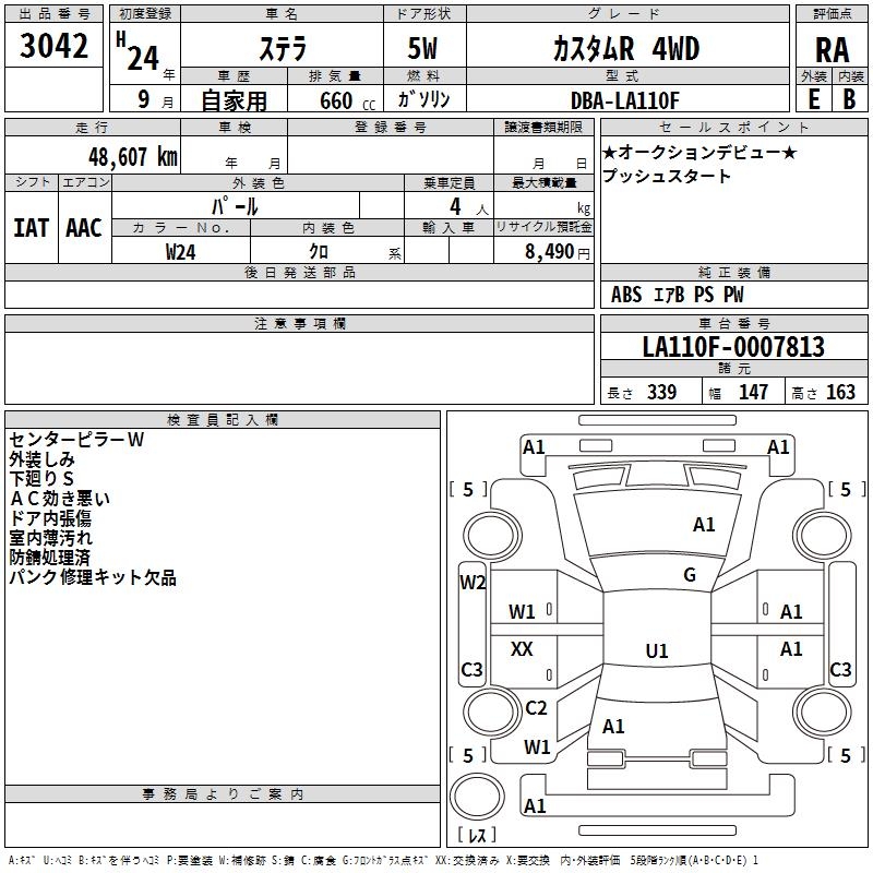 SUBARU STELLA CUSTOM R 4WD - лот 3042
