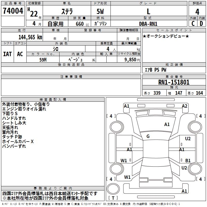 SUBARU STELLA - лот 74004