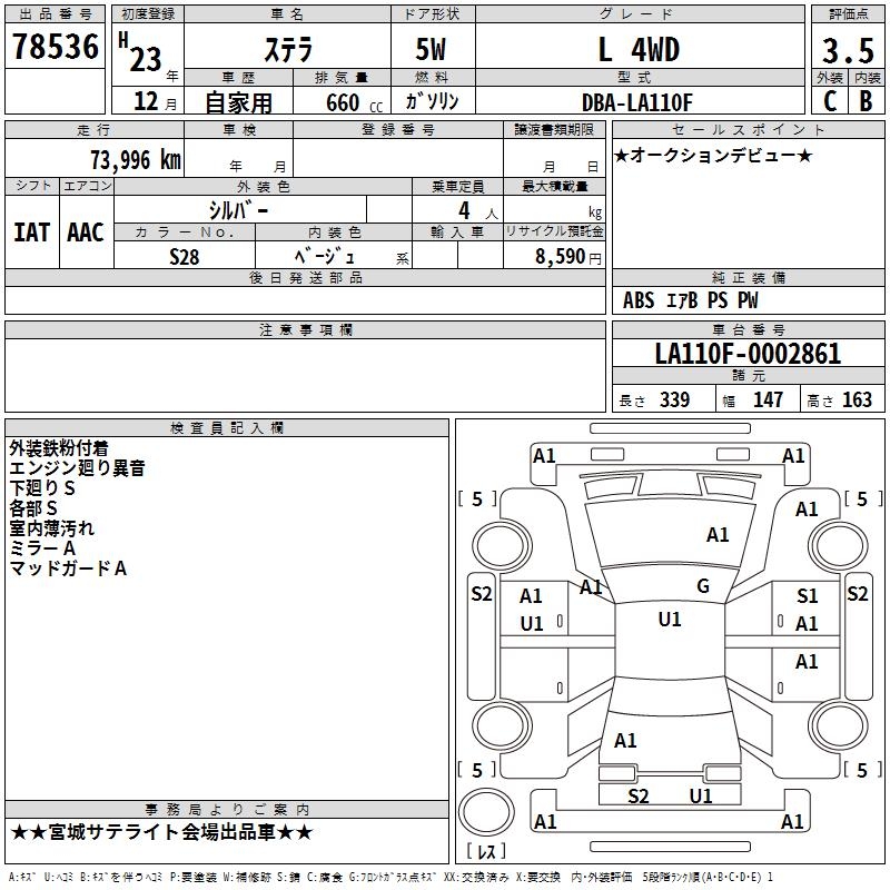 SUBARU STELLA - лот 78536