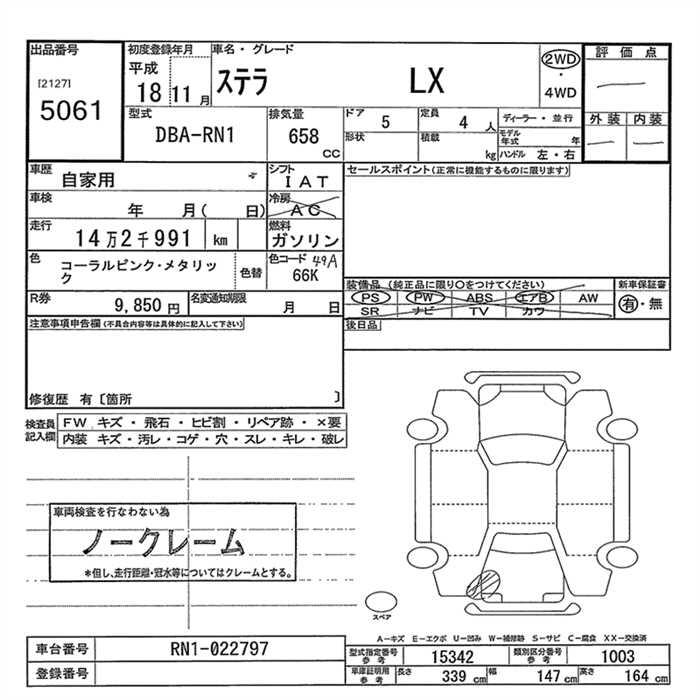 SUBARU STELLA - лот 5061