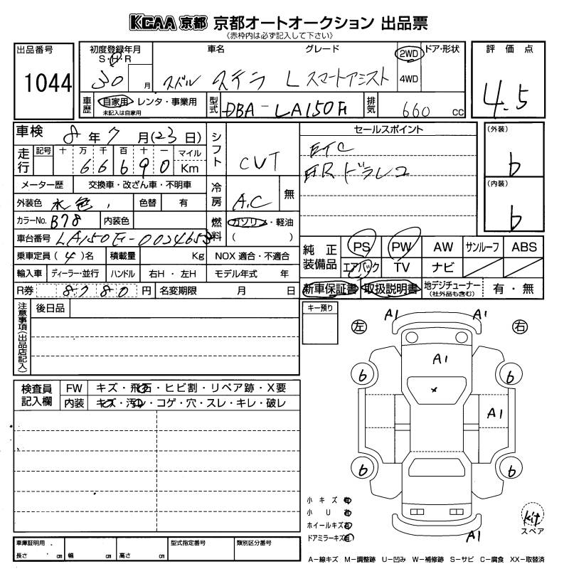 SUBARU STELLA - лот 1044