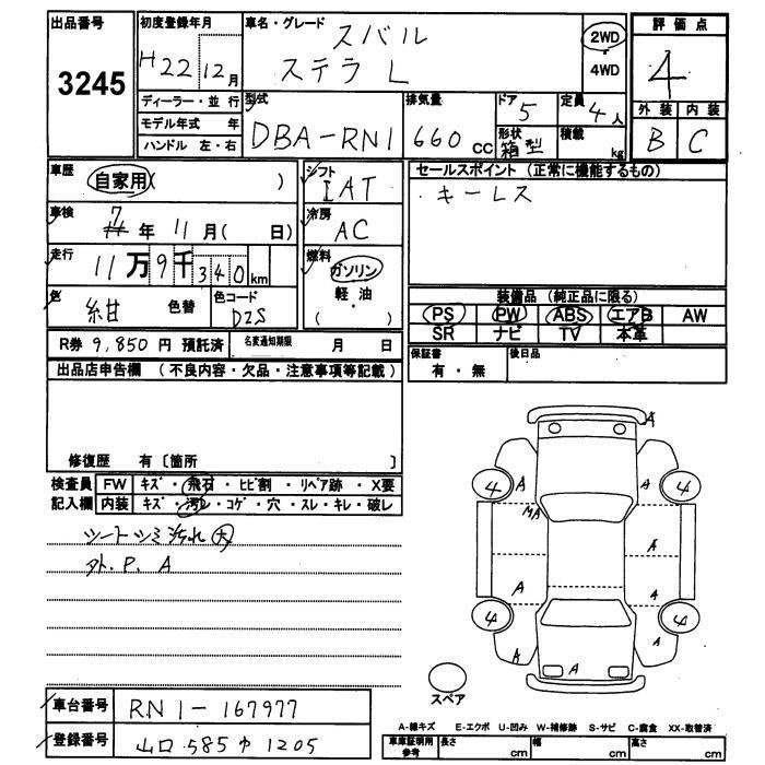 SUBARU STELLA - лот 3245
