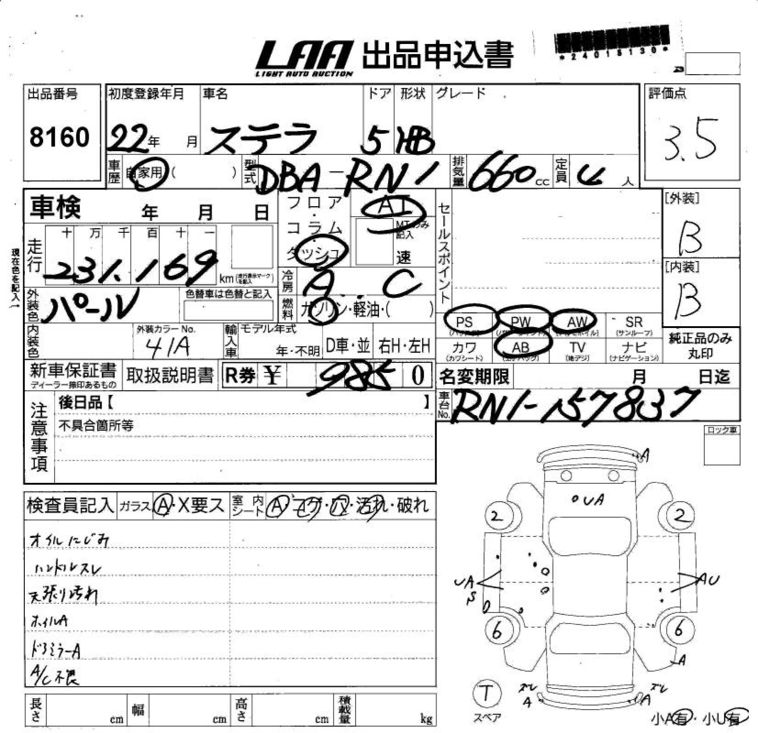SUBARU STELLA - лот 8160