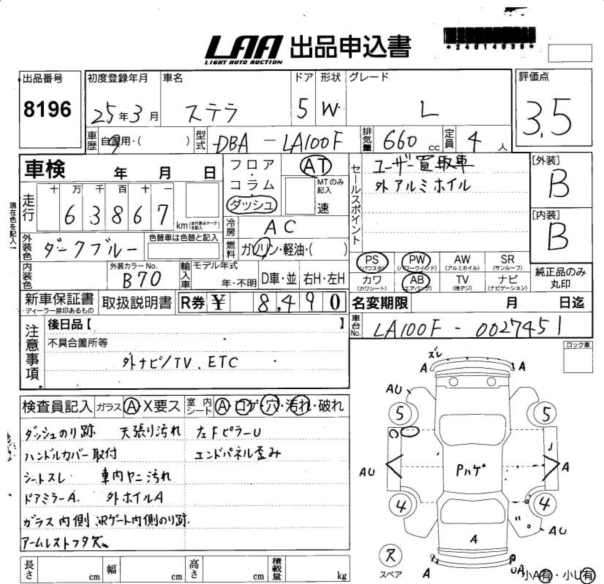 SUBARU STELLA - лот 8196