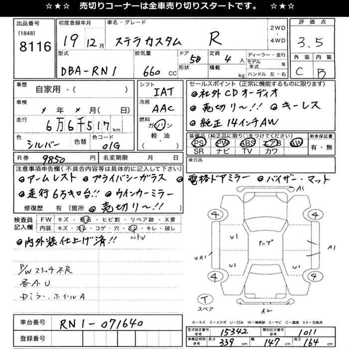 SUBARU STELLA - лот 8116