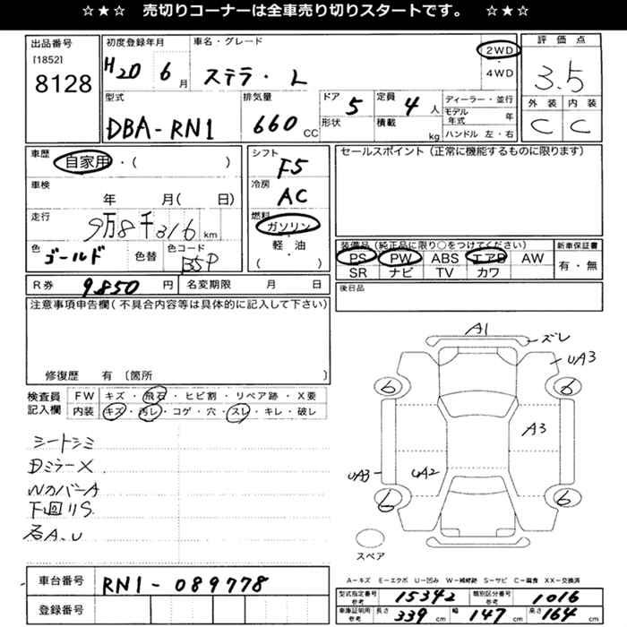 SUBARU STELLA - лот 8128