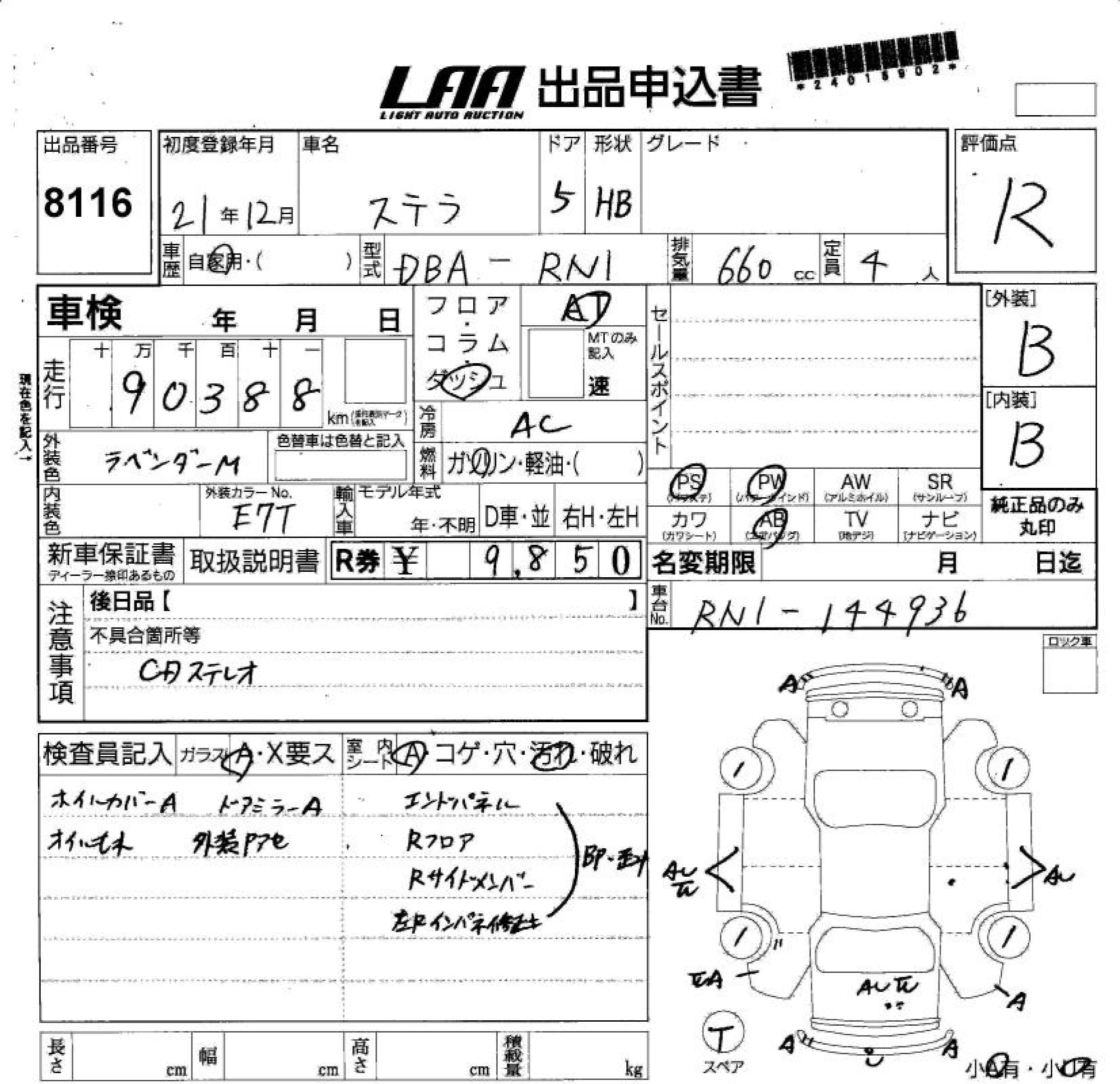 SUBARU STELLA - лот 8116