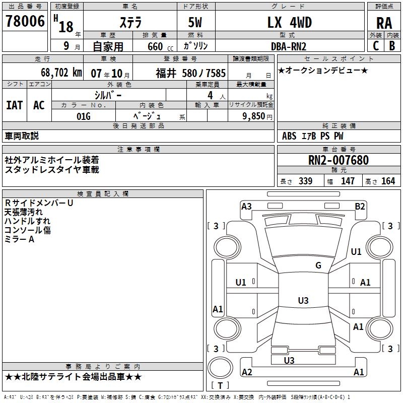 SUBARU STELLA - лот 78006