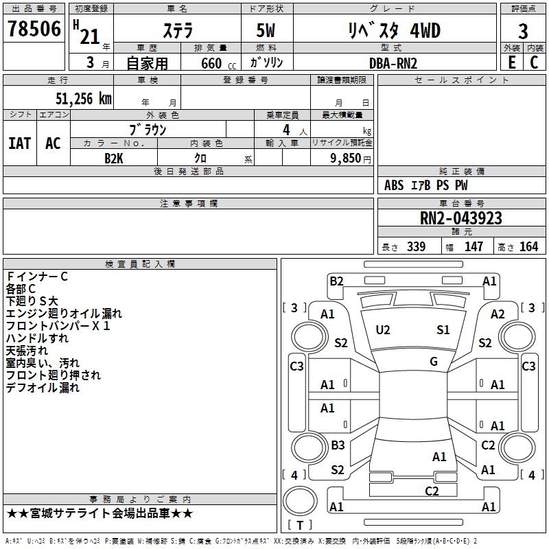 SUBARU STELLA - лот 78506