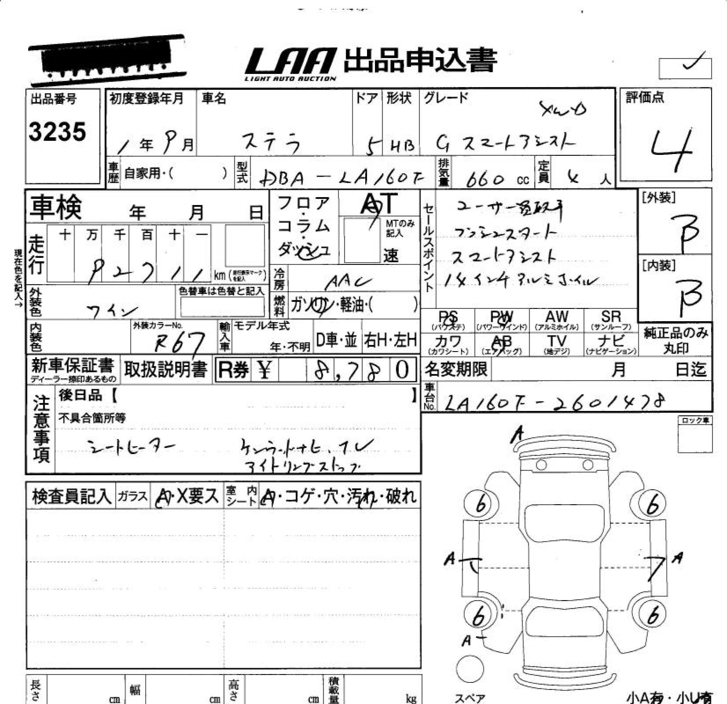 SUBARU STELLA G SMART ASSIST 4WD - лот 3235