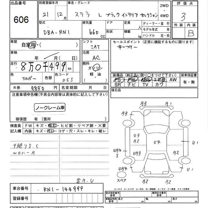 SUBARU STELLA L BLACK INTERIOR SELECTION - лот 606