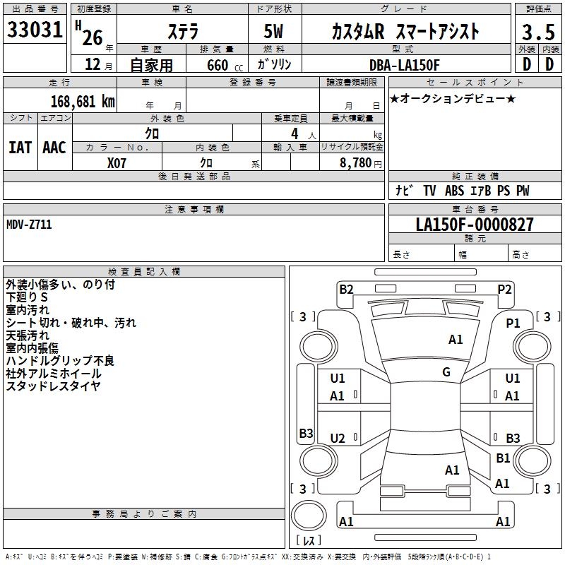 SUBARU STELLA CUSTOM R SMART ASSIST - лот 33031