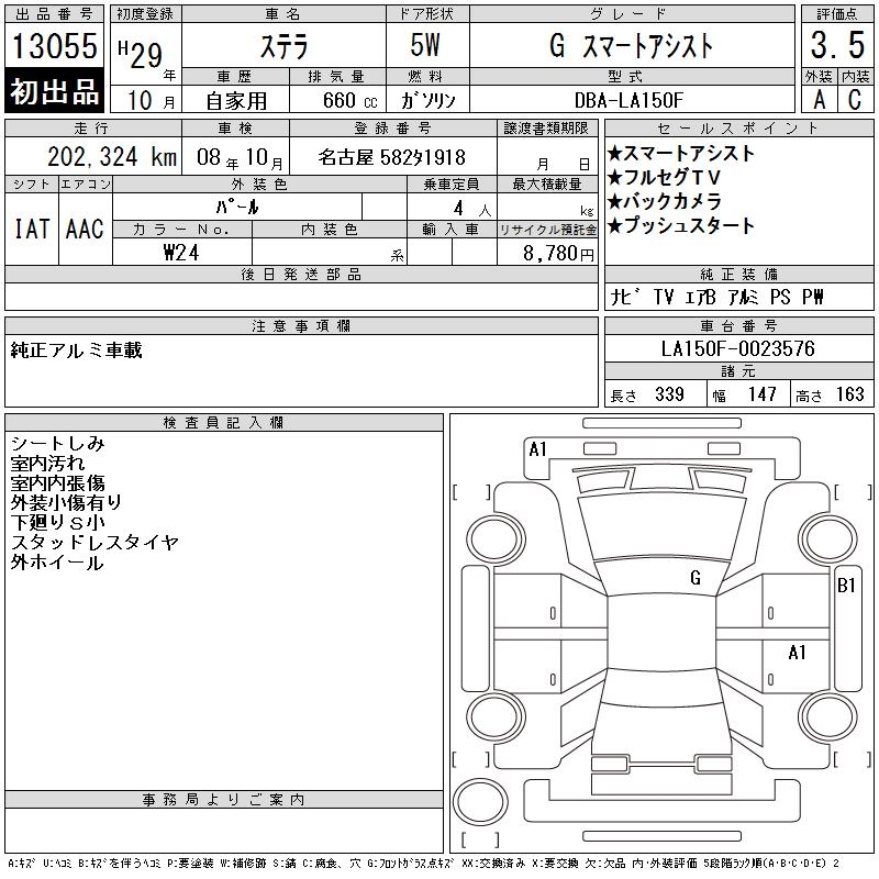 SUBARU STELLA G SMART ASSIST - лот 13055