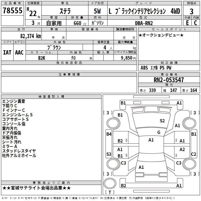 SUBARU STELLA L BLACK INTERIOR SELECT 4WD - лот 78555