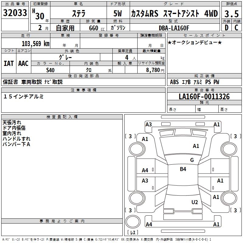 SUBARU STELLA CUSTOM RS SMART ASSIST 4WD - лот 32033