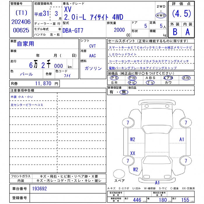 SUBARU SUBARU XV, 2019