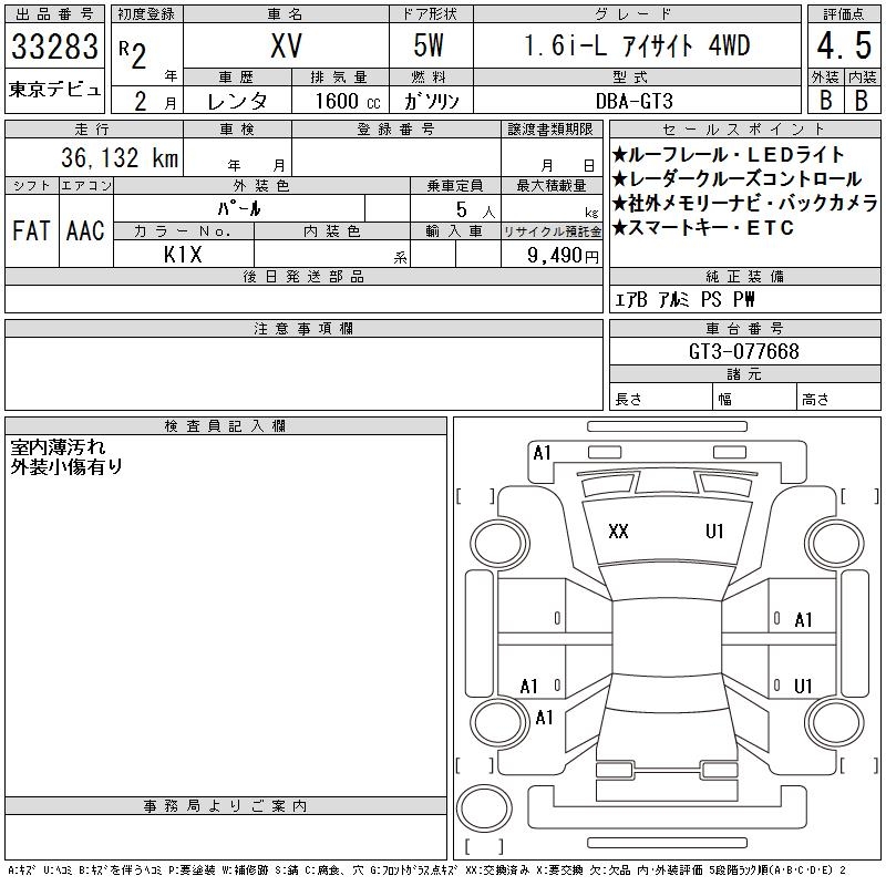 SUBARU SUBARU XV - лот 33283